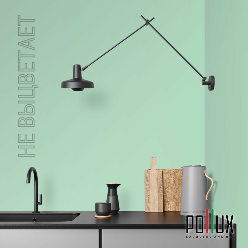 Краска моющаяся интерьерная для стен и потолков, Pollux INTERIOR без запаха, быстросохнущая, акриловая, матовое покрытие, цвет NCS S 6030-G, 1л.