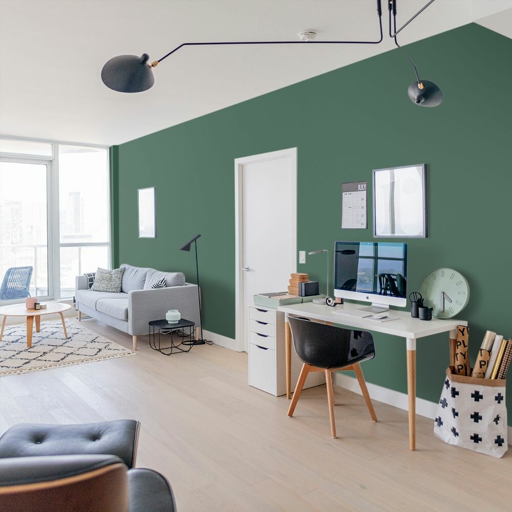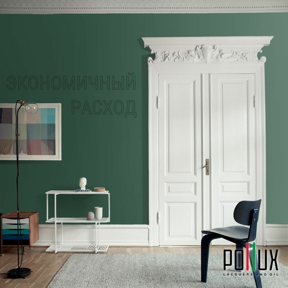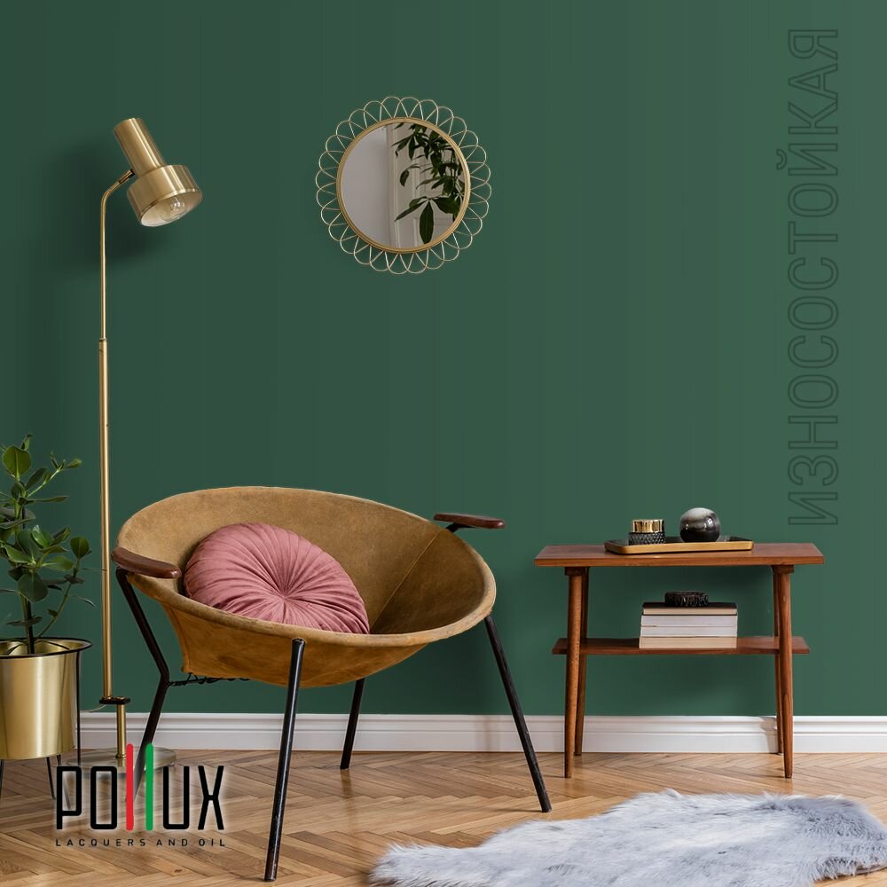 Краска моющаяся интерьерная для стен и потолков, Pollux INTERIOR без запаха, быстросохнущая, акриловая, матовое покрытие, цвет NCS S 4050-G, 1л.