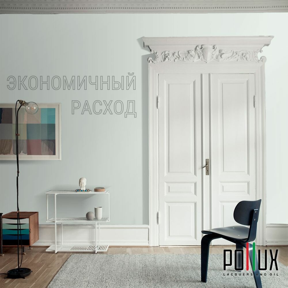 Краска моющаяся интерьерная для стен и потолков, Pollux INTERIOR без запаха, быстросохнущая, акриловая, матовое покрытие, цвет NCS S 7502-G, 1л.