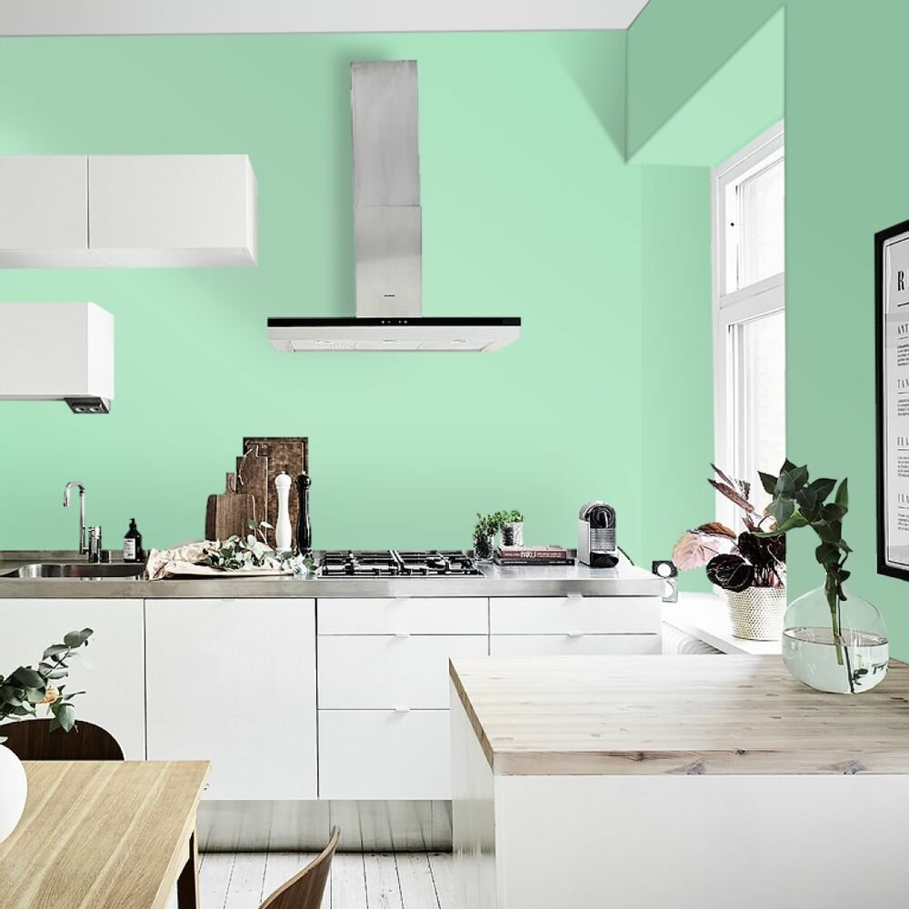 Краска моющаяся интерьерная для стен и потолков, Pollux INTERIOR без запаха, быстросохнущая, акриловая, матовое покрытие, цвет NCS S 6030-G, 1л.