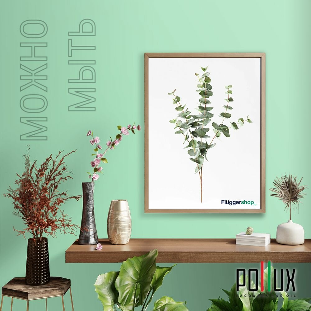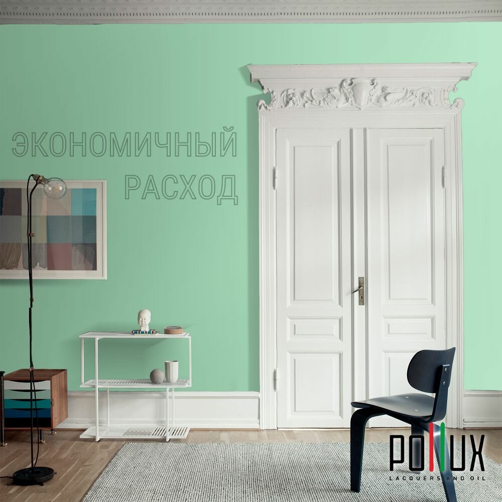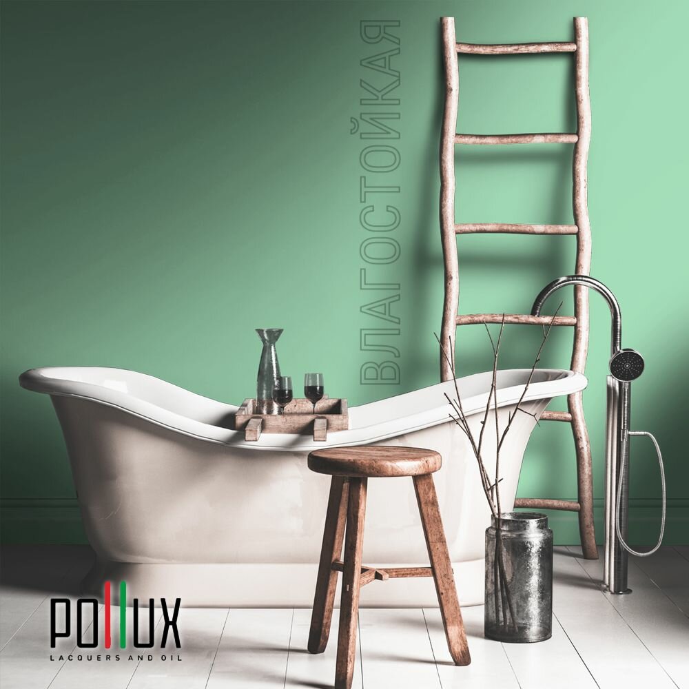 Краска моющаяся интерьерная для стен и потолков, Pollux INTERIOR без запаха, быстросохнущая, акриловая, матовое покрытие, цвет NCS S 5540-G, 1л.
