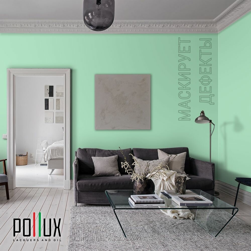 Краска моющаяся интерьерная для стен и потолков, Pollux INTERIOR без запаха, быстросохнущая, акриловая, матовое покрытие, цвет NCS S 1020-G, 1л.