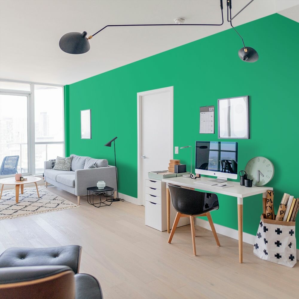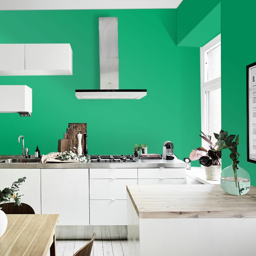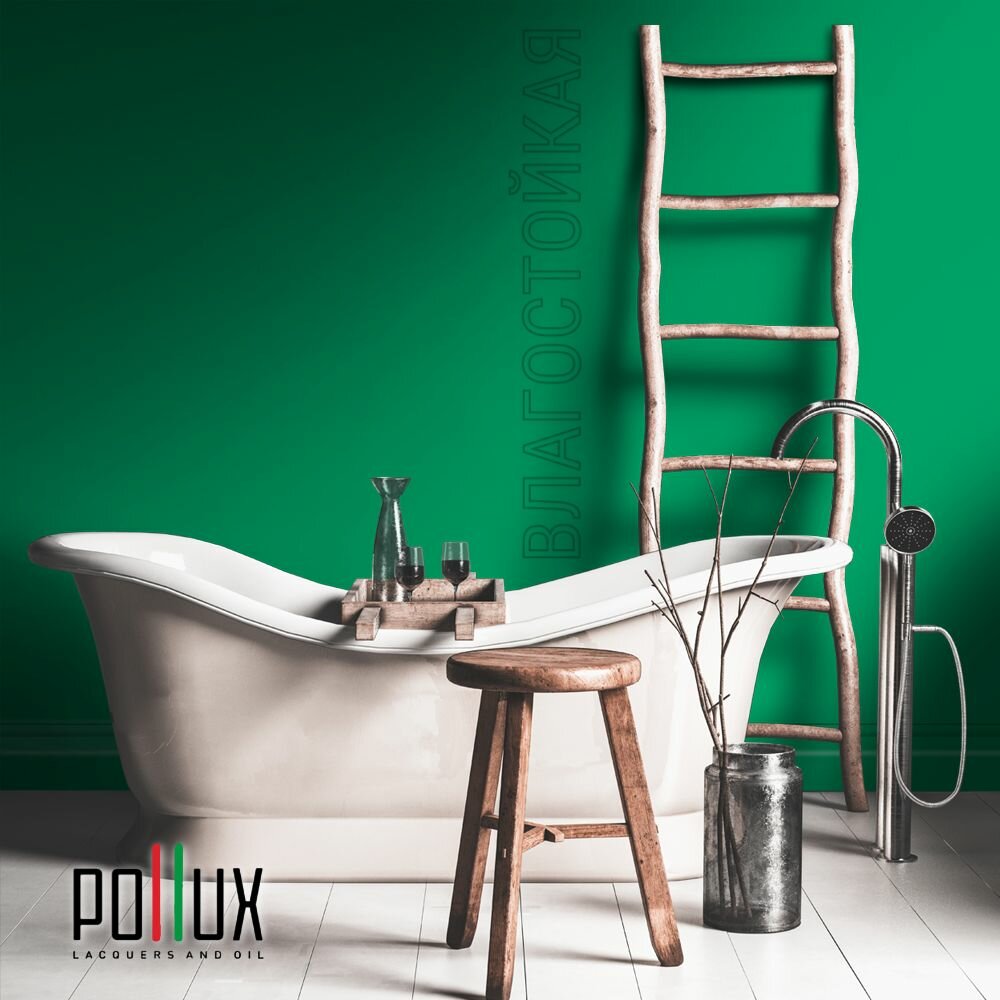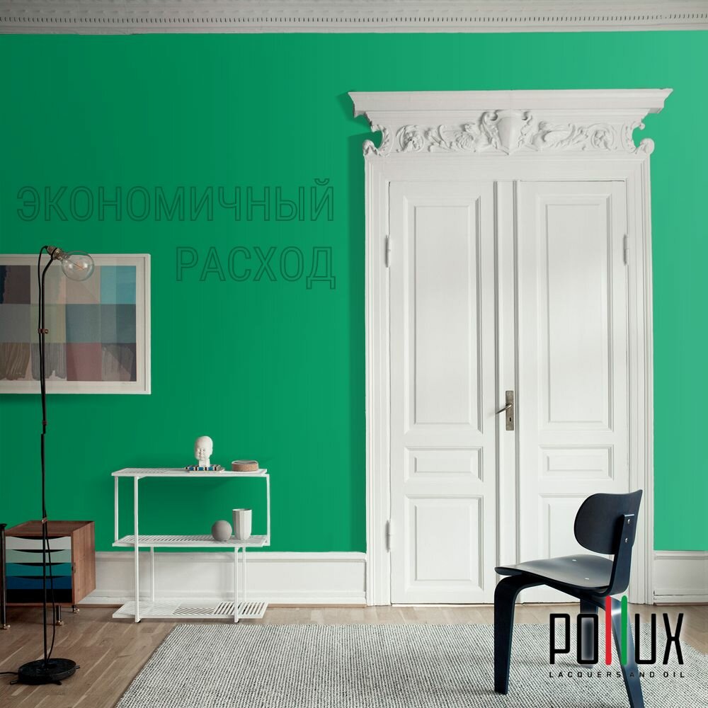 Краска моющаяся интерьерная для стен и потолков, Pollux INTERIOR без запаха, быстросохнущая, акриловая, матовое покрытие, цвет NCS S 6030-G, 1л.
