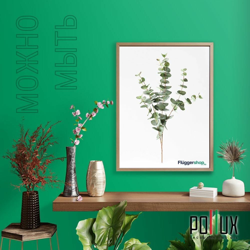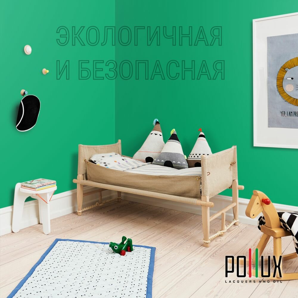 Краска моющаяся интерьерная для стен и потолков, Pollux INTERIOR без запаха, быстросохнущая, акриловая, матовое покрытие, цвет NCS S 6020-G, 1л.