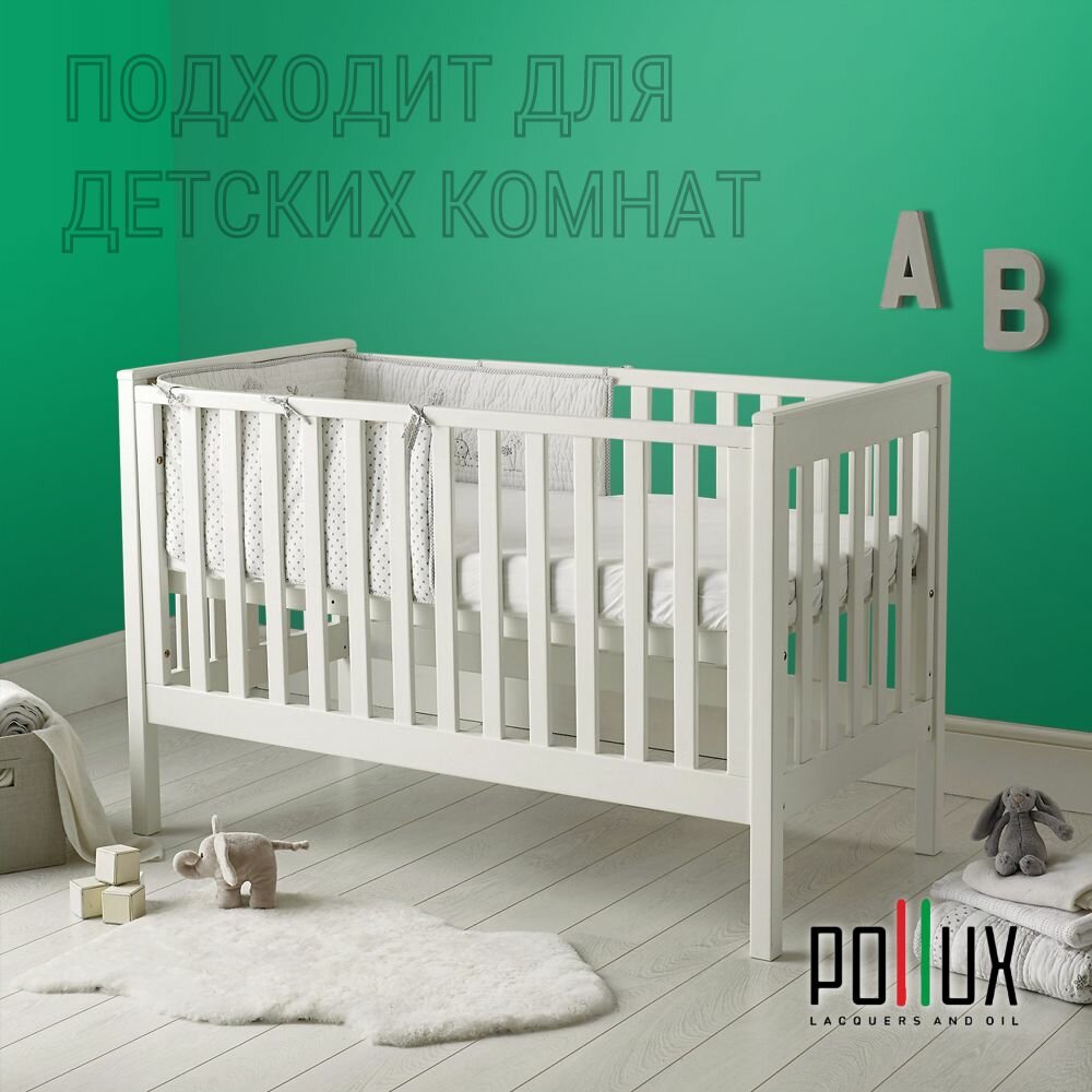 Краска моющаяся интерьерная для стен и потолков, Pollux INTERIOR без запаха, быстросохнущая, акриловая, матовое покрытие, цвет NCS S 2002-G, 1л.