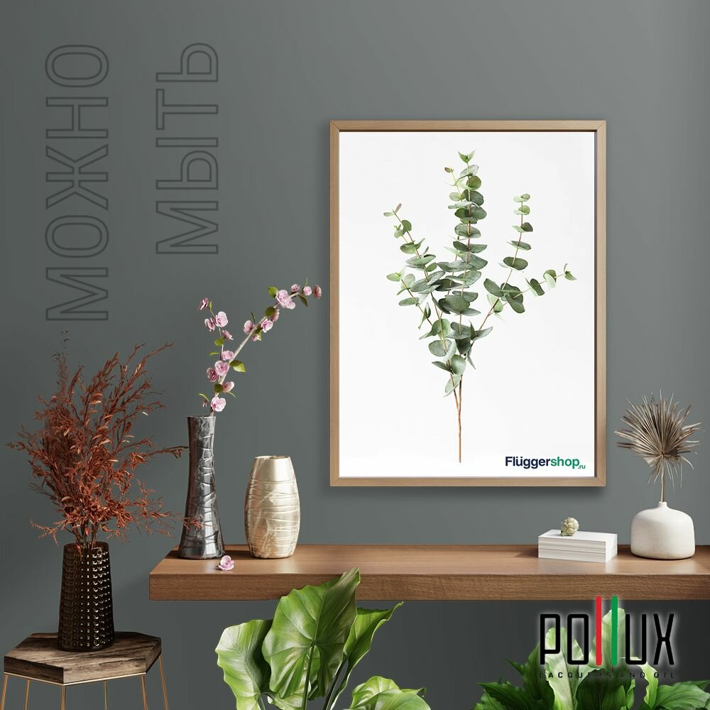 Краска моющаяся интерьерная для стен и потолков, Pollux INTERIOR без запаха, быстросохнущая, акриловая, матовое покрытие, цвет NCS S 1502-G, 1л.