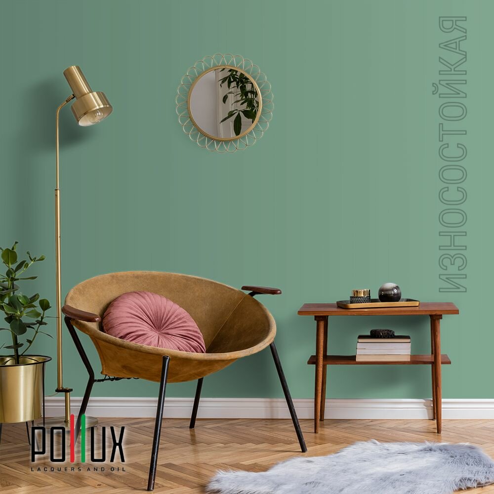 Краска моющаяся интерьерная для стен и потолков, Pollux INTERIOR без запаха, быстросохнущая, акриловая, матовое покрытие, цвет NCS S 4050-G, 1л.