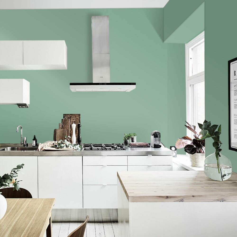 Краска моющаяся интерьерная для стен и потолков, Pollux INTERIOR без запаха, быстросохнущая, акриловая, матовое покрытие, цвет NCS S 6020-G, 1л.