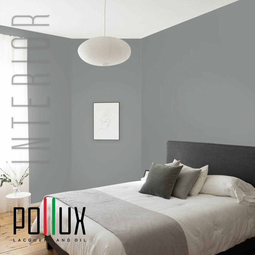 Краска моющаяся интерьерная для стен и потолков, Pollux INTERIOR без запаха, быстросохнущая, акриловая, матовое покрытие, цвет NCS S 7020-G, 1л.