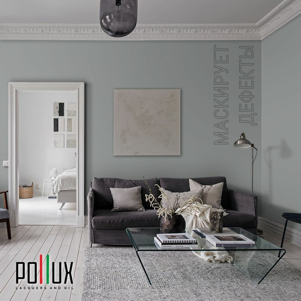 Краска моющаяся интерьерная для стен и потолков, Pollux INTERIOR без запаха, быстросохнущая, акриловая, матовое покрытие, цвет NCS S 7502-G, 1л.