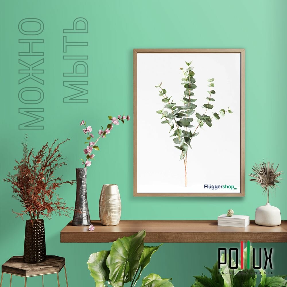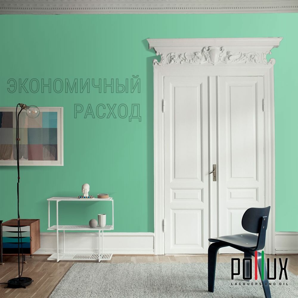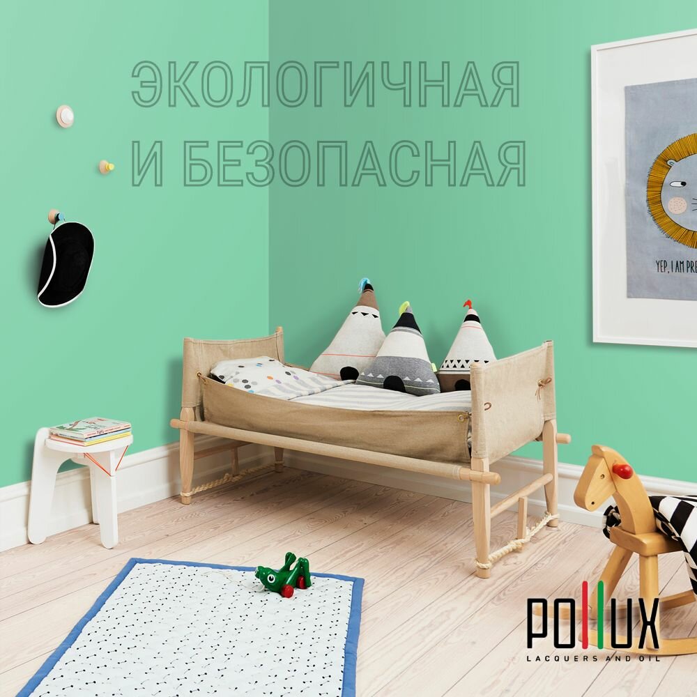 Краска моющаяся интерьерная для стен и потолков, Pollux INTERIOR без запаха, быстросохнущая, акриловая, матовое покрытие, цвет NCS S 5540-G, 1л.