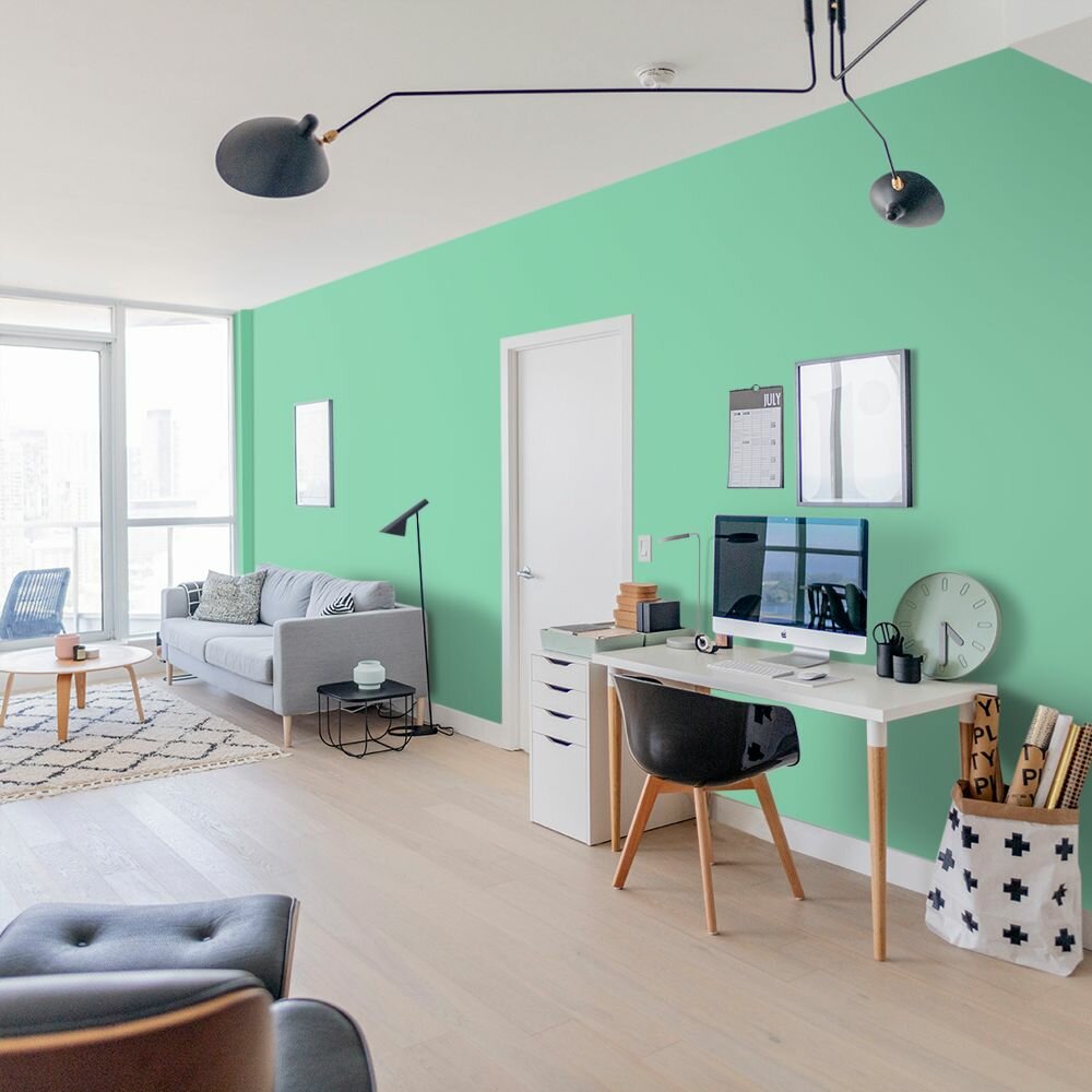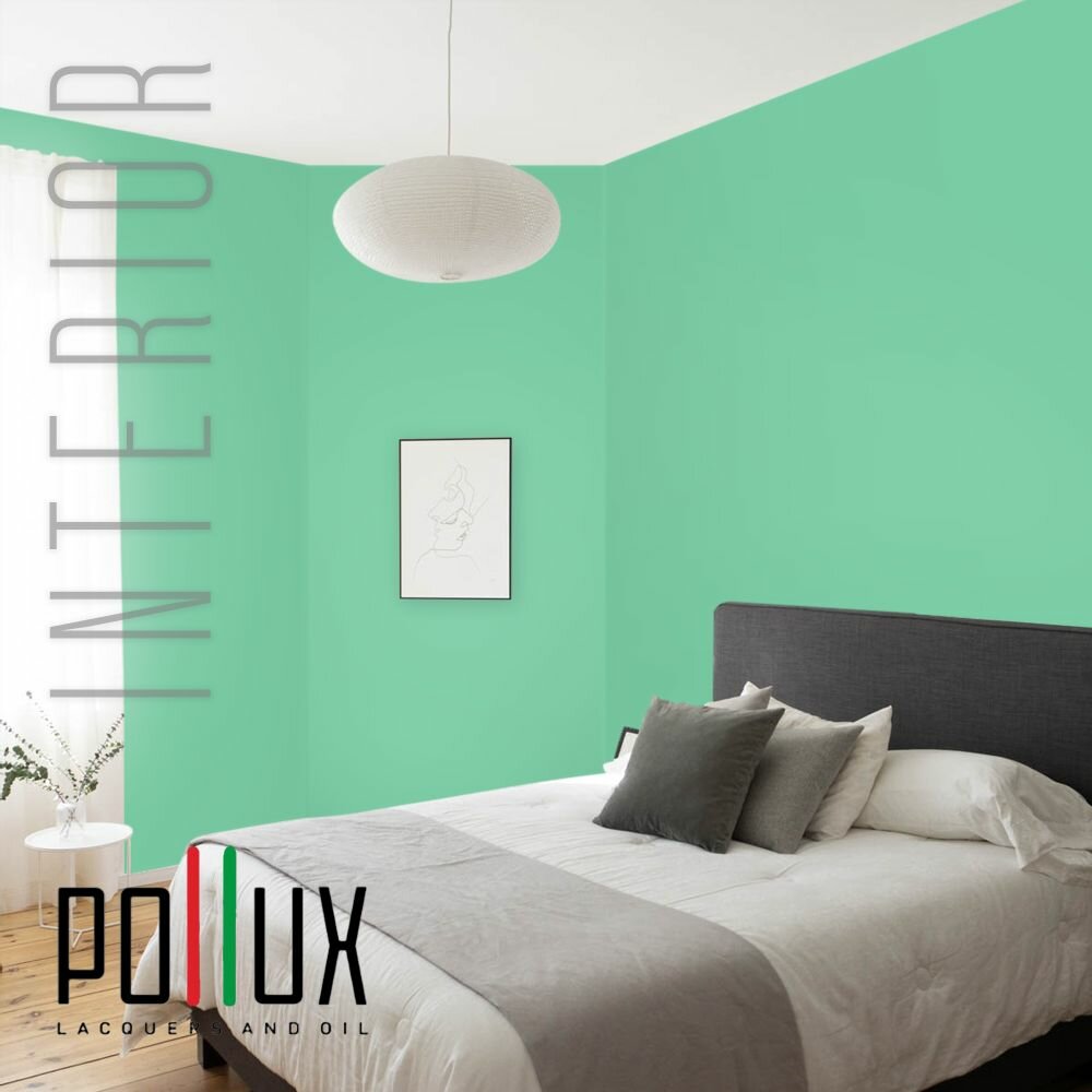 Краска моющаяся интерьерная для стен и потолков, Pollux INTERIOR без запаха, быстросохнущая, акриловая, матовое покрытие, цвет NCS S 6030-G, 1л.