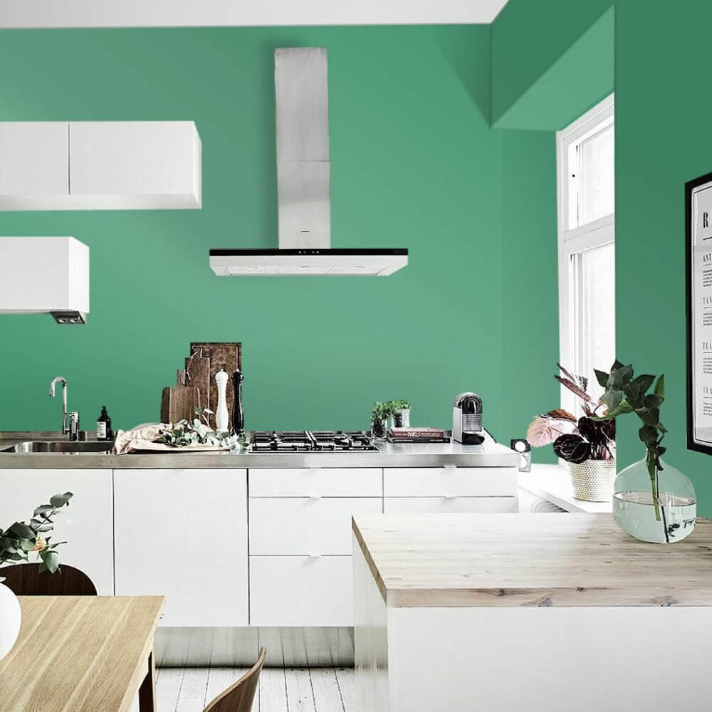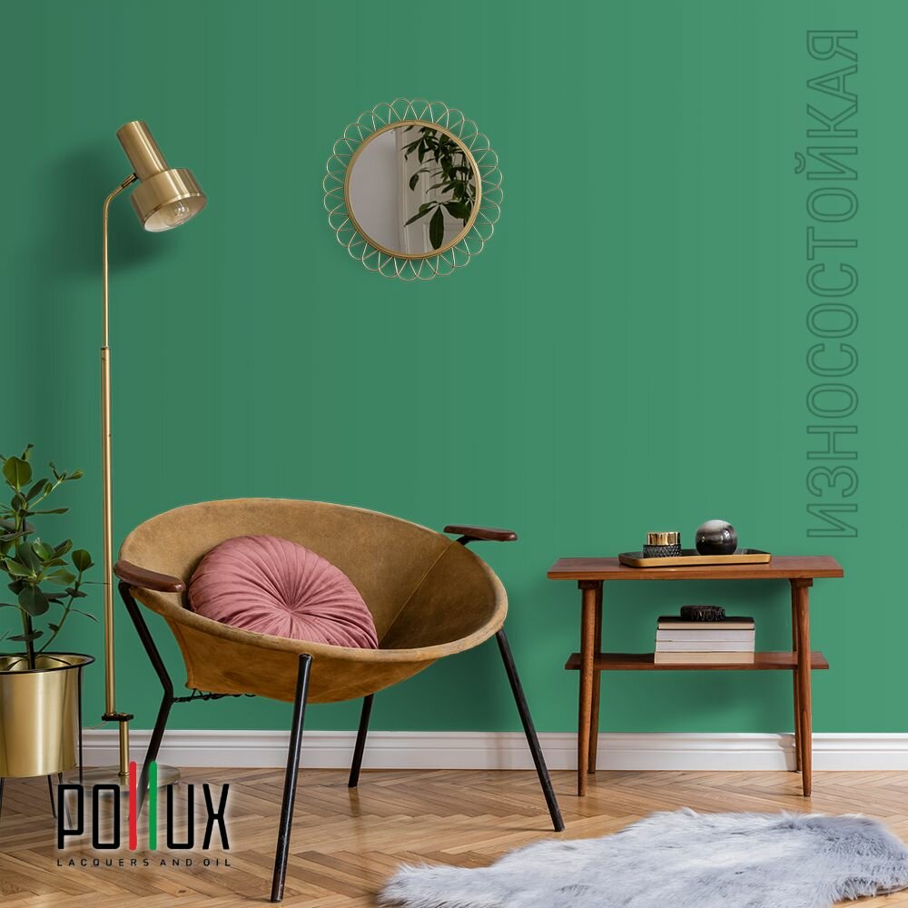 Краска моющаяся интерьерная для стен и потолков, Pollux INTERIOR без запаха, быстросохнущая, акриловая, матовое покрытие, цвет NCS S 6030-G, 1л.