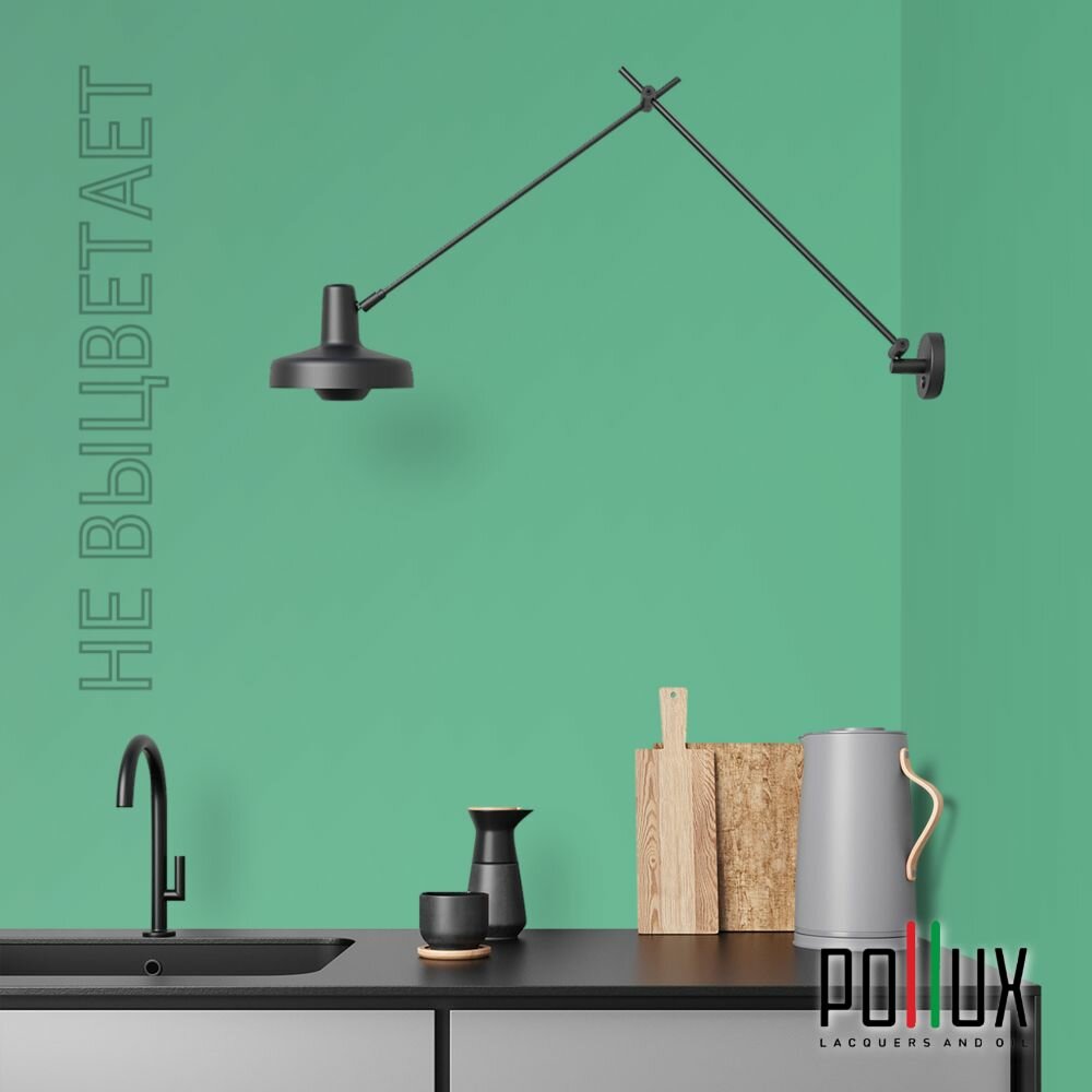 Краска моющаяся интерьерная для стен и потолков, Pollux INTERIOR без запаха, быстросохнущая, акриловая, матовое покрытие, цвет NCS S 6030-G, 1л.