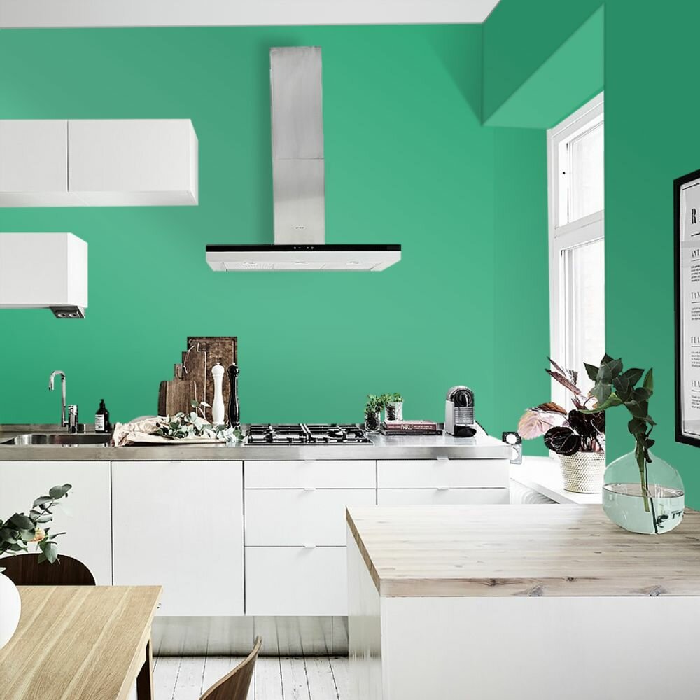 Краска моющаяся интерьерная для стен и потолков, Pollux INTERIOR без запаха, быстросохнущая, акриловая, матовое покрытие, цвет NCS S 6030-G, 1л.