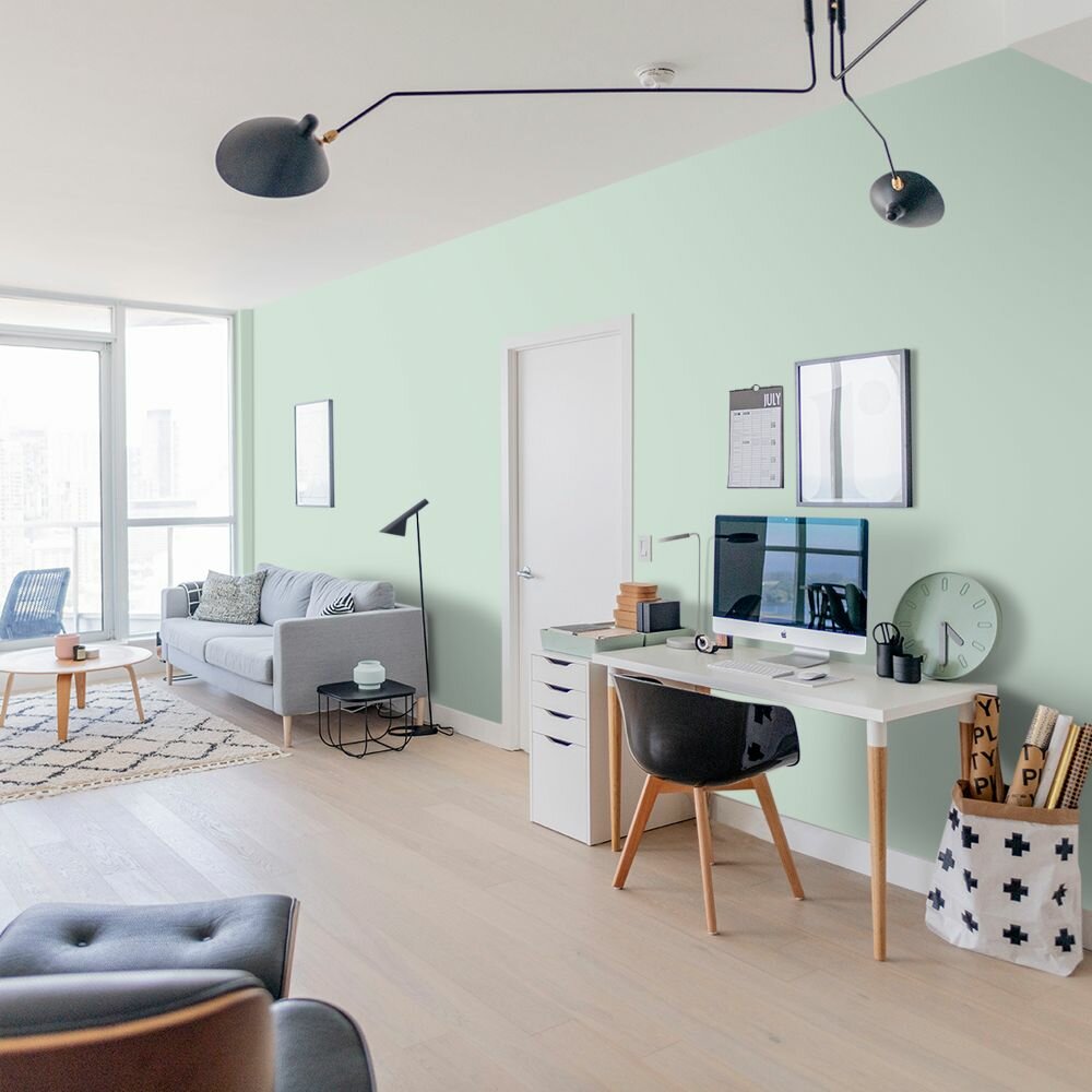 Краска моющаяся интерьерная для стен и потолков, Pollux INTERIOR без запаха, быстросохнущая, акриловая, матовое покрытие, цвет NCS S 6020-G, 1л.