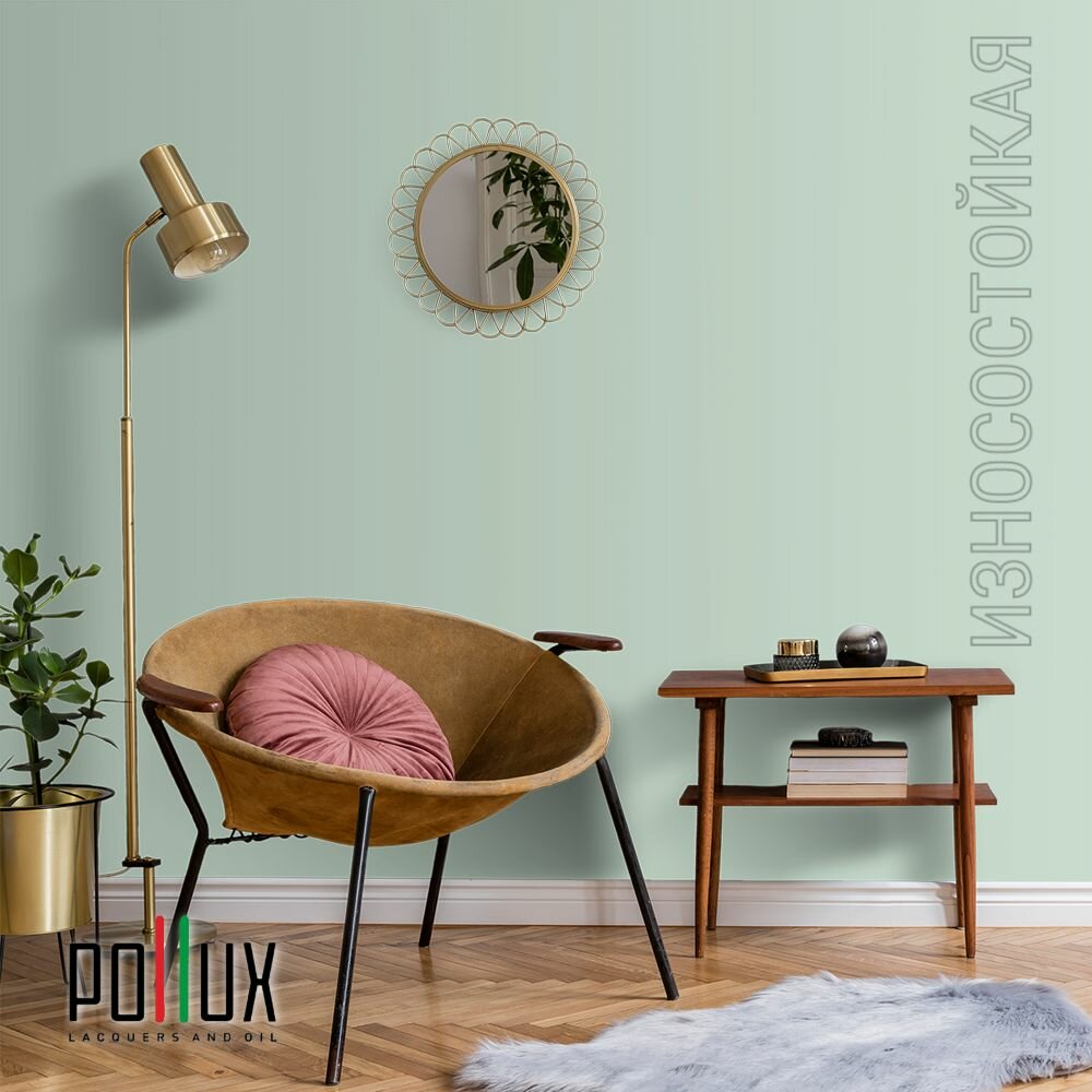 Краска моющаяся интерьерная для стен и потолков, Pollux INTERIOR без запаха, быстросохнущая, акриловая, матовое покрытие, цвет NCS S 0530-G, 1л.