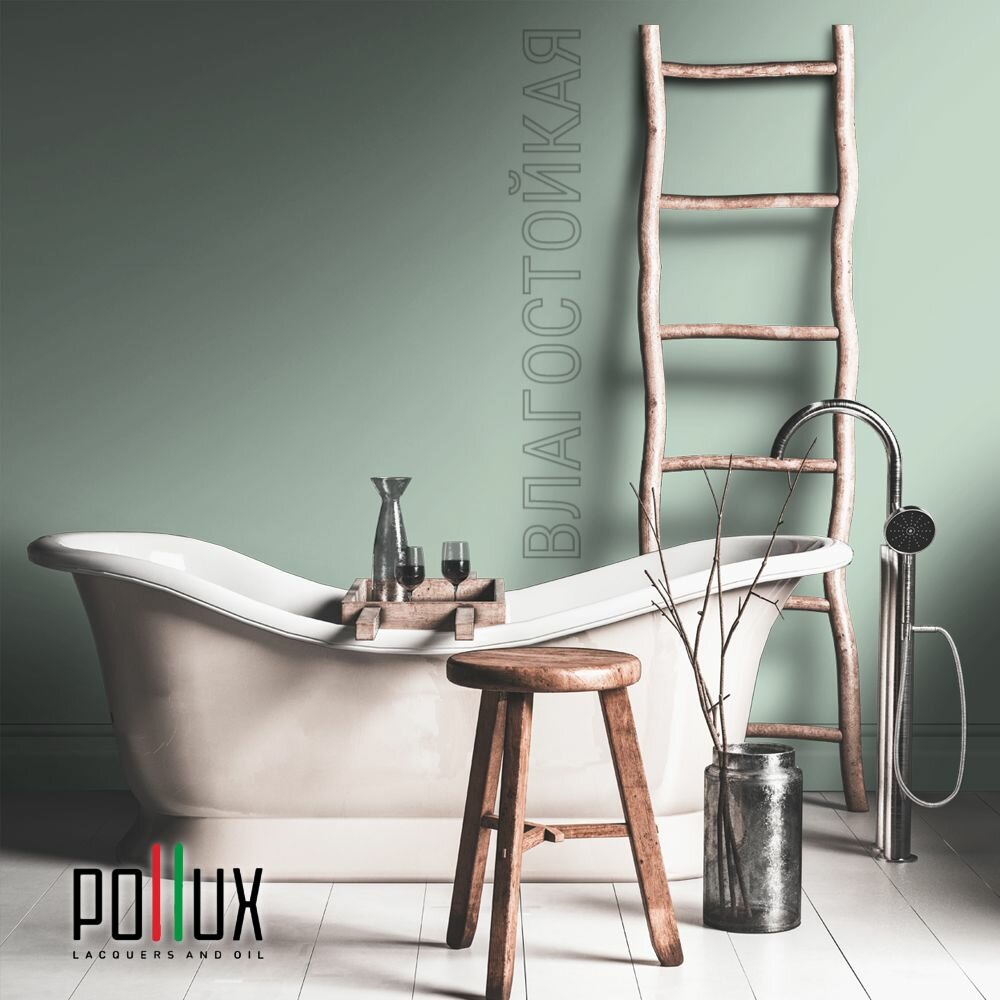 Краска моющаяся интерьерная для стен и потолков, Pollux INTERIOR без запаха, быстросохнущая, акриловая, матовое покрытие, цвет NCS S 5540-G, 1л.