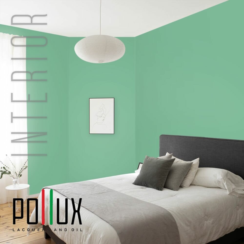 Краска моющаяся интерьерная для стен и потолков, Pollux INTERIOR без запаха, быстросохнущая, акриловая, матовое покрытие, цвет NCS S 5540-G, 1л.