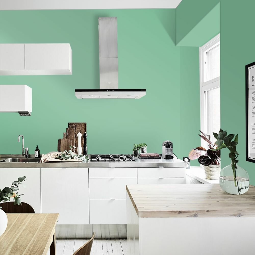 Краска моющаяся интерьерная для стен и потолков, Pollux INTERIOR без запаха, быстросохнущая, акриловая, матовое покрытие, цвет NCS S 6020-G, 1л.