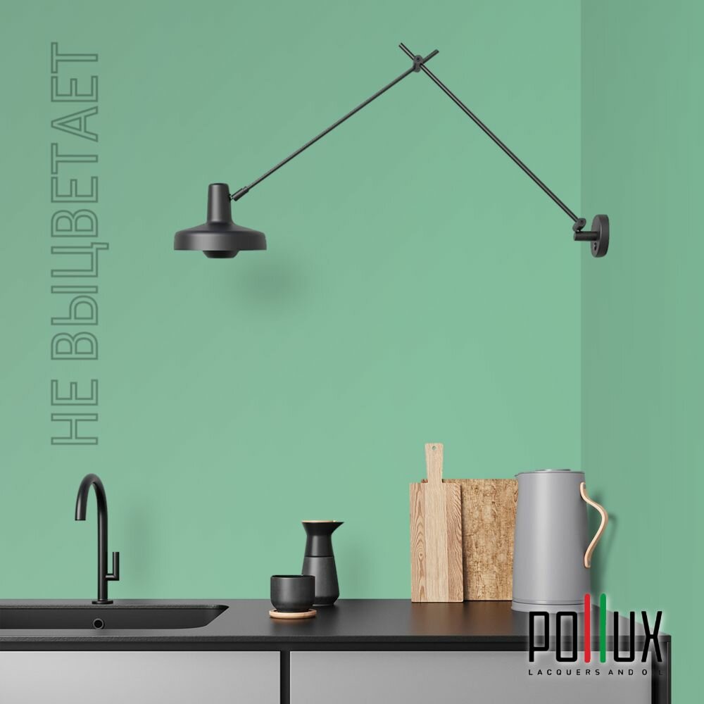 Краска моющаяся интерьерная для стен и потолков, Pollux INTERIOR без запаха, быстросохнущая, акриловая, матовое покрытие, цвет NCS S 6030-G, 1л.