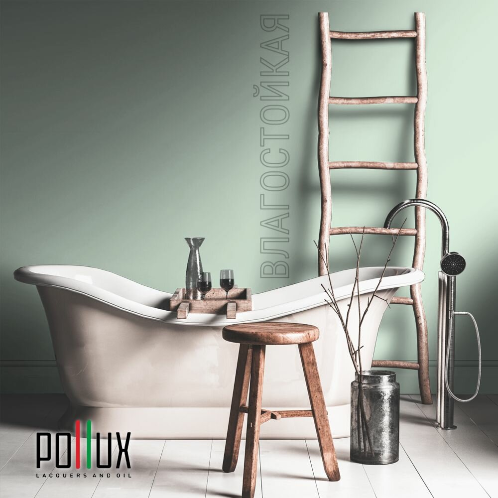 Краска моющаяся интерьерная для стен и потолков, Pollux INTERIOR без запаха, быстросохнущая, акриловая, матовое покрытие, цвет NCS S 4030-R10B, 1л.