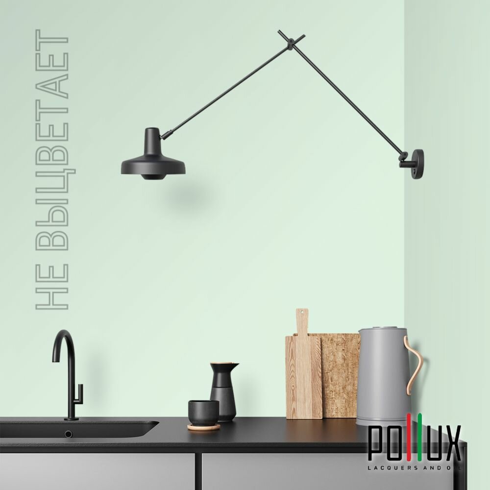 Краска моющаяся интерьерная для стен и потолков, Pollux INTERIOR без запаха, быстросохнущая, акриловая, матовое покрытие, цвет NCS S 6030-G, 1л.