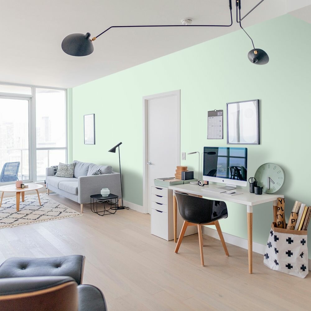 Краска моющаяся интерьерная для стен и потолков, Pollux INTERIOR без запаха, быстросохнущая, акриловая, матовое покрытие, цвет NCS S 6020-G, 1л.