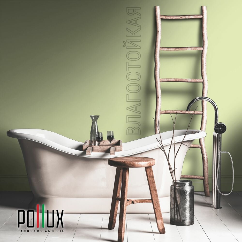 Краска моющаяся интерьерная для стен и потолков, Pollux INTERIOR без запаха, быстросохнущая, акриловая, матовое покрытие, цвет NCS S 5020-G50Y, 1л.