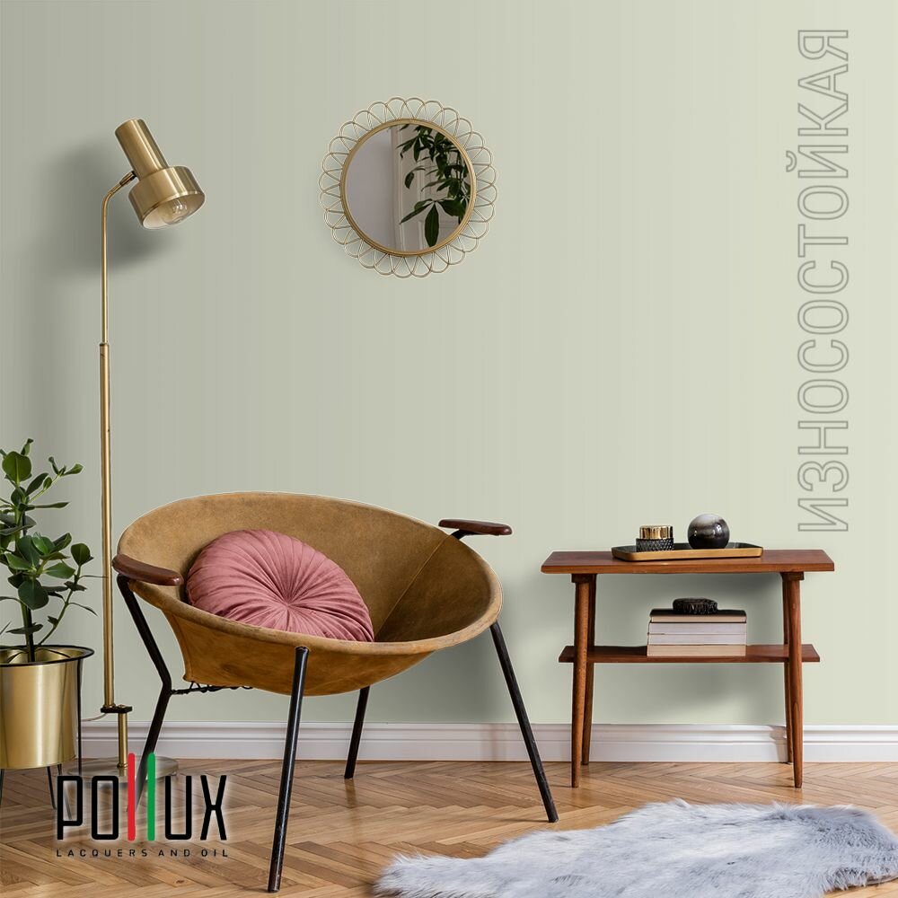 Краска моющаяся интерьерная для стен и потолков, Pollux INTERIOR без запаха, быстросохнущая, акриловая, матовое покрытие, цвет NCS S 5020-G50Y, 1л.