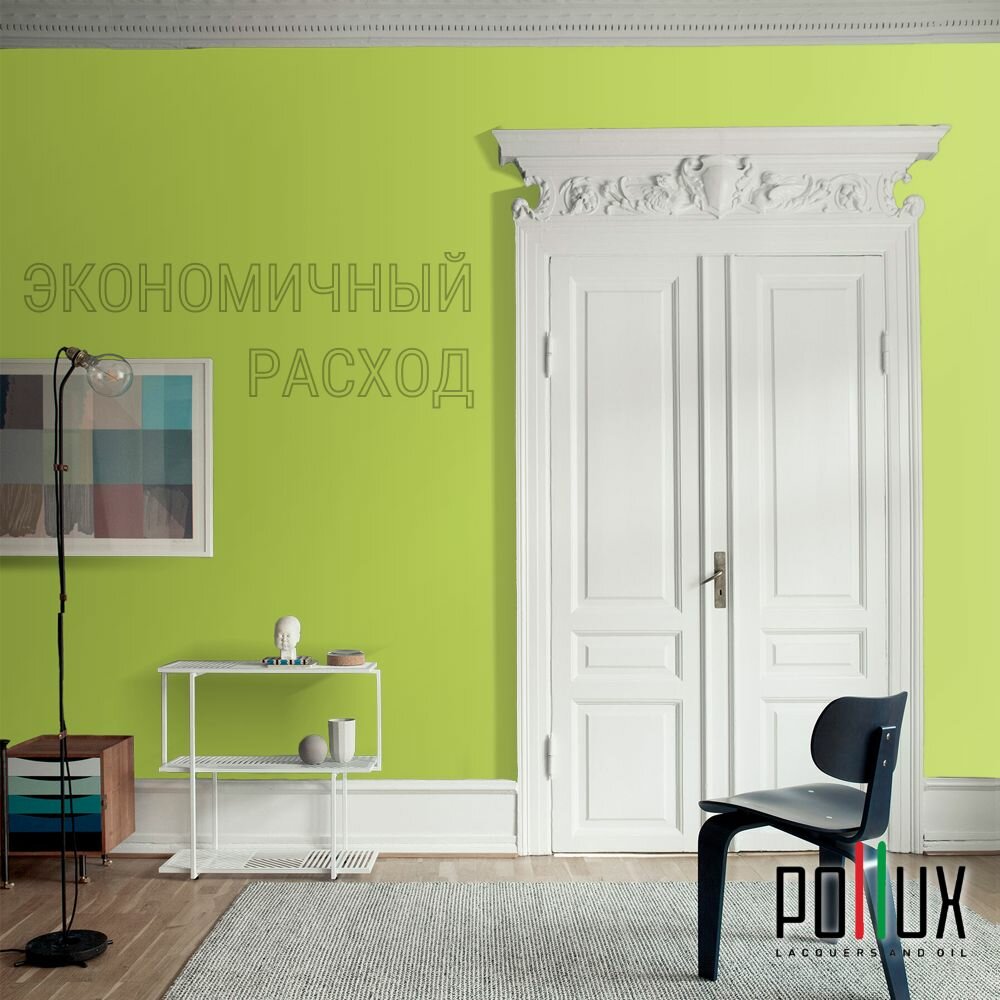 Краска моющаяся интерьерная для стен и потолков, Pollux INTERIOR без запаха, быстросохнущая, акриловая, матовое покрытие, цвет NCS S 4030-G50Y, 1л.