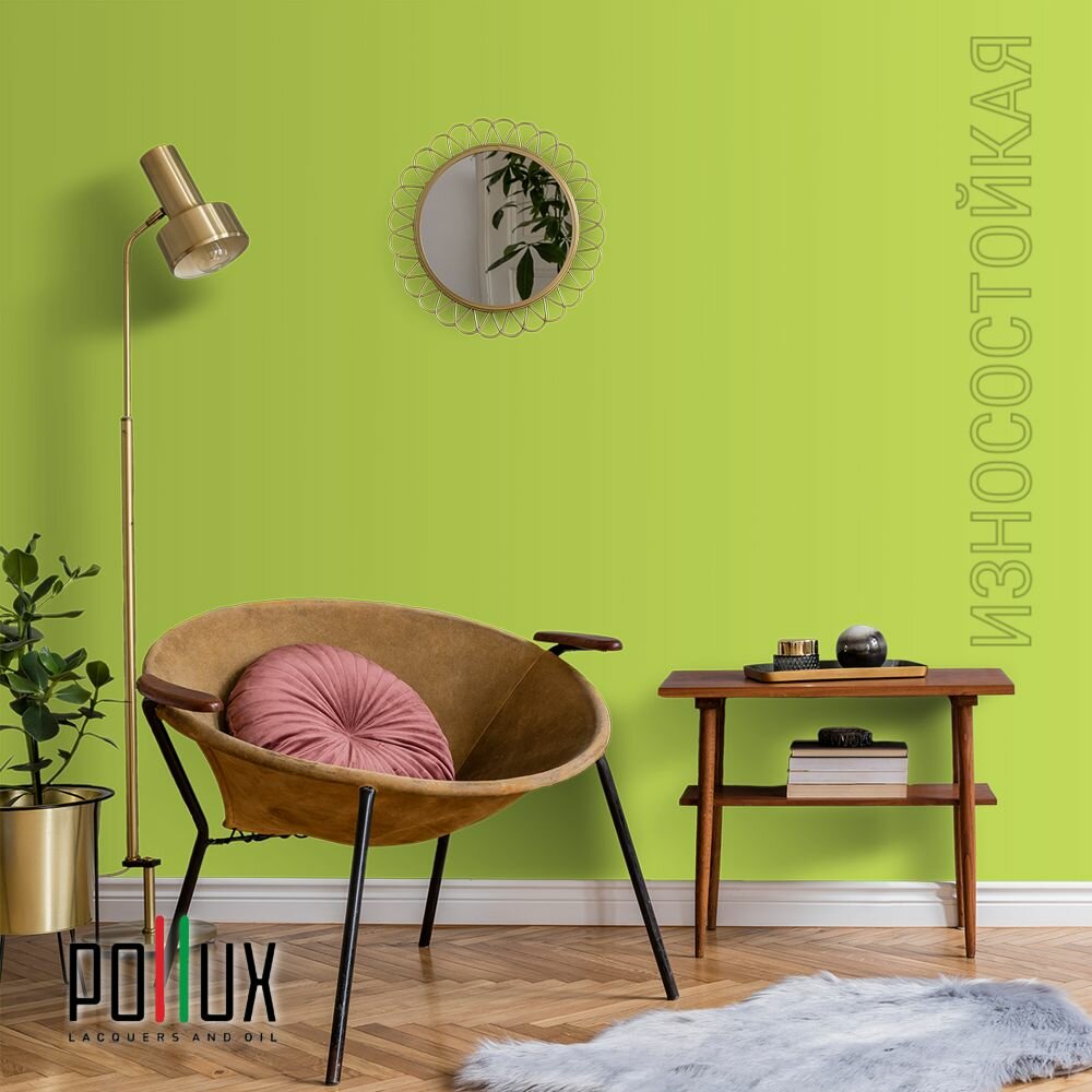 Краска моющаяся интерьерная для стен и потолков, Pollux INTERIOR без запаха, быстросохнущая, акриловая, матовое покрытие, цвет NCS S 6020-G50Y, 1л.