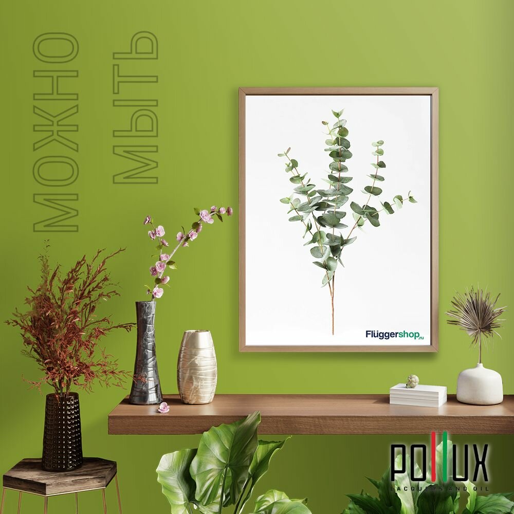 Краска моющаяся интерьерная для стен и потолков, Pollux INTERIOR без запаха, быстросохнущая, акриловая, матовое покрытие, цвет NCS S 8005-G50Y, 1л.