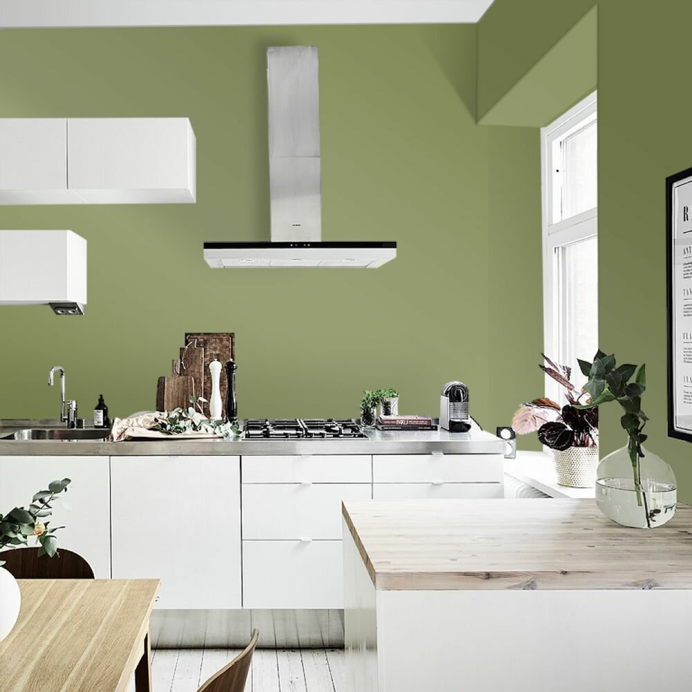Краска моющаяся интерьерная для стен и потолков, Pollux INTERIOR без запаха, быстросохнущая, акриловая, матовое покрытие, цвет NCS S 6020-G50Y, 1л.