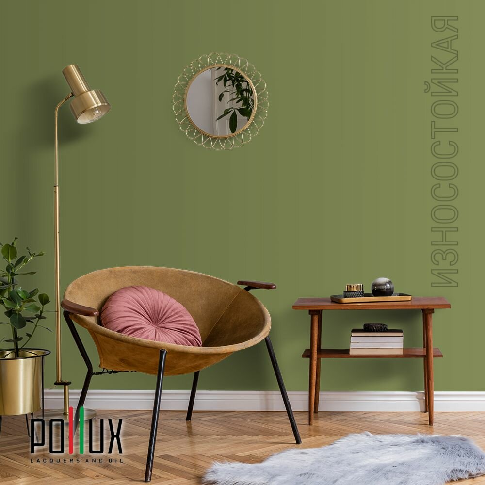 Краска моющаяся интерьерная для стен и потолков, Pollux INTERIOR без запаха, быстросохнущая, акриловая, матовое покрытие, цвет NCS S 5005-G50Y, 1л.