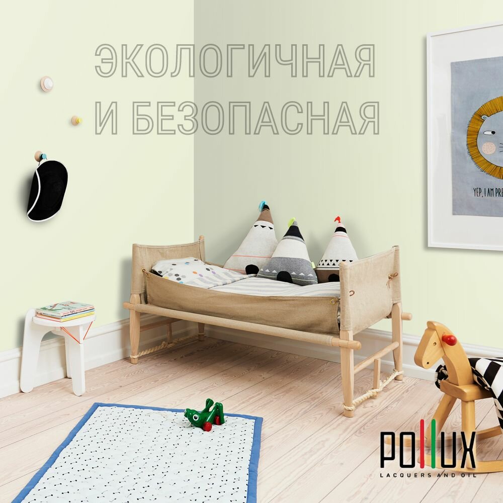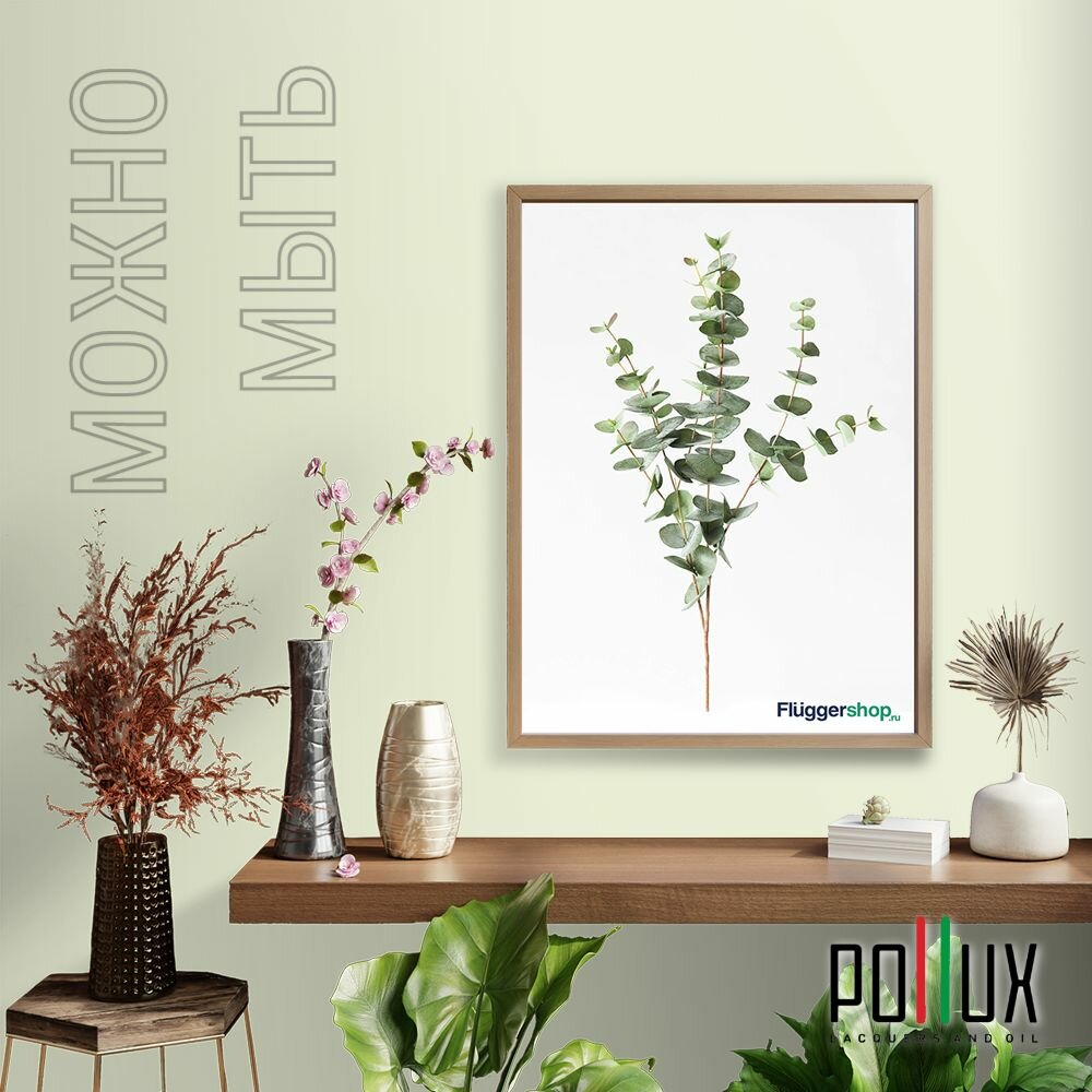 Краска моющаяся интерьерная для стен и потолков, Pollux INTERIOR без запаха, быстросохнущая, акриловая, матовое покрытие, цвет NCS S 5020-G50Y, 1л.