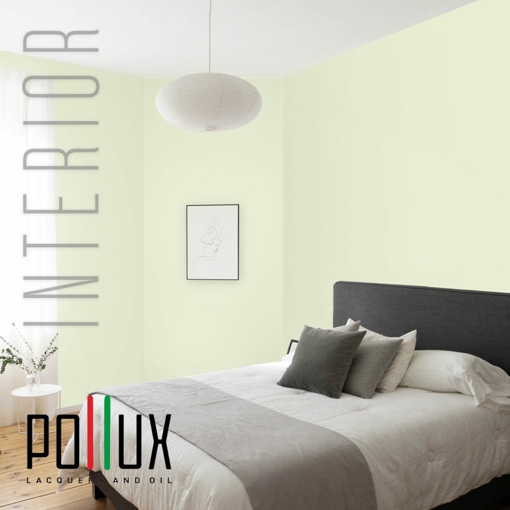 Краска моющаяся интерьерная для стен и потолков, Pollux INTERIOR без запаха, быстросохнущая, акриловая, матовое покрытие, цвет NCS S 0520-G50Y, 1л.