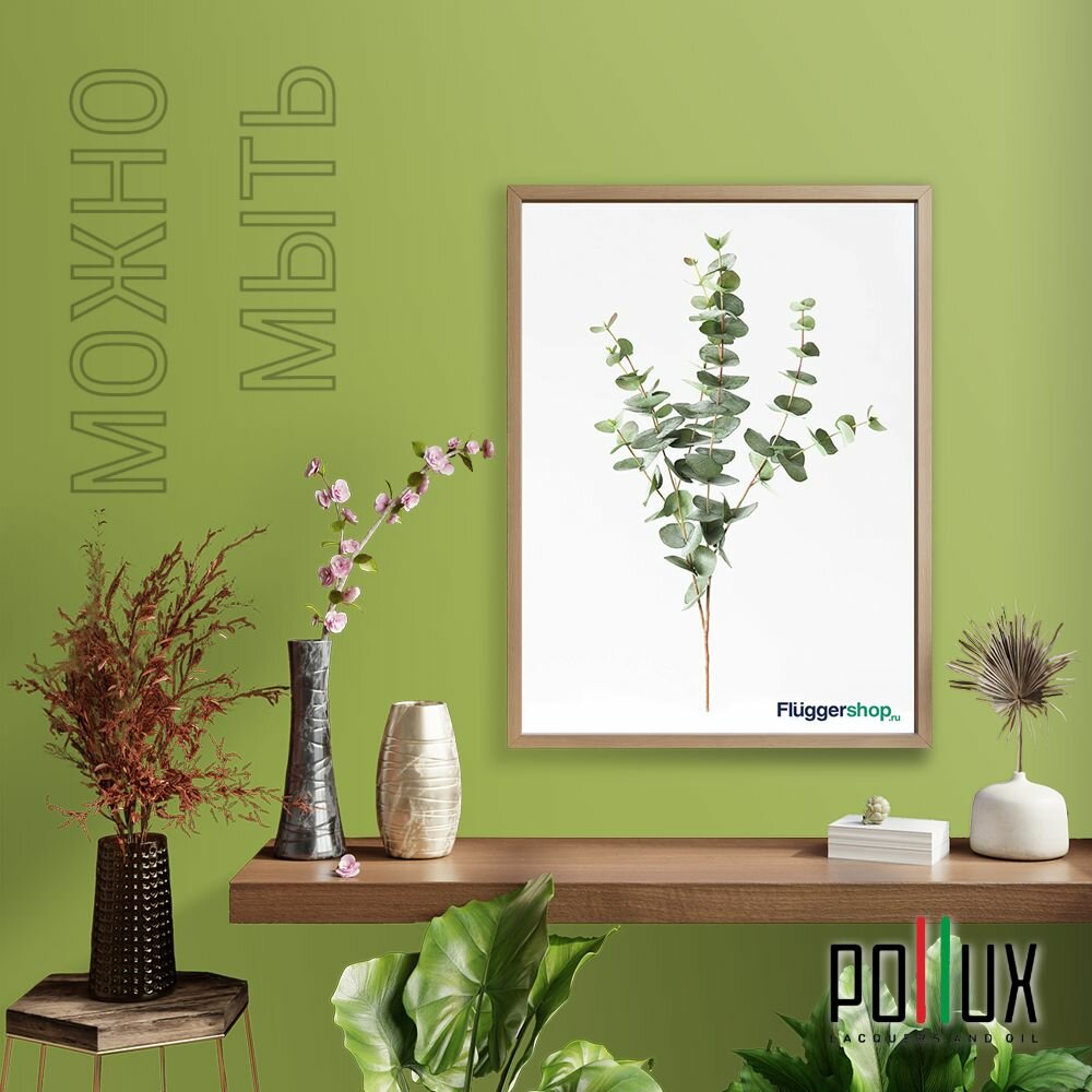 Краска моющаяся интерьерная для стен и потолков, Pollux INTERIOR без запаха, быстросохнущая, акриловая, матовое покрытие, цвет NCS S 5540-G50Y, 1л.