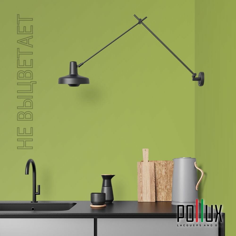 Краска моющаяся интерьерная для стен и потолков, Pollux INTERIOR без запаха, быстросохнущая, акриловая, матовое покрытие, цвет NCS S 6530-G50Y, 1л.