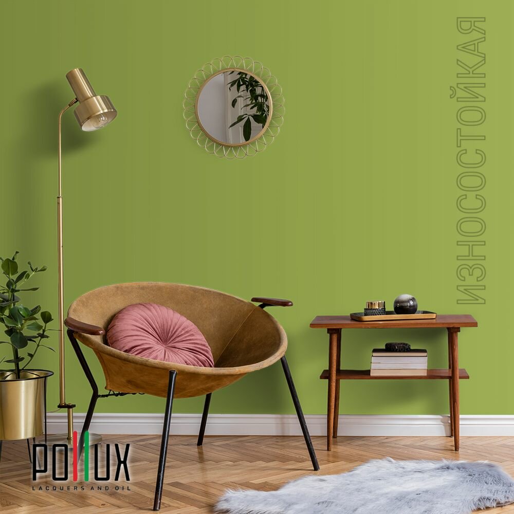 Краска моющаяся интерьерная для стен и потолков, Pollux INTERIOR без запаха, быстросохнущая, акриловая, матовое покрытие, цвет NCS S 5005-G50Y, 1л.