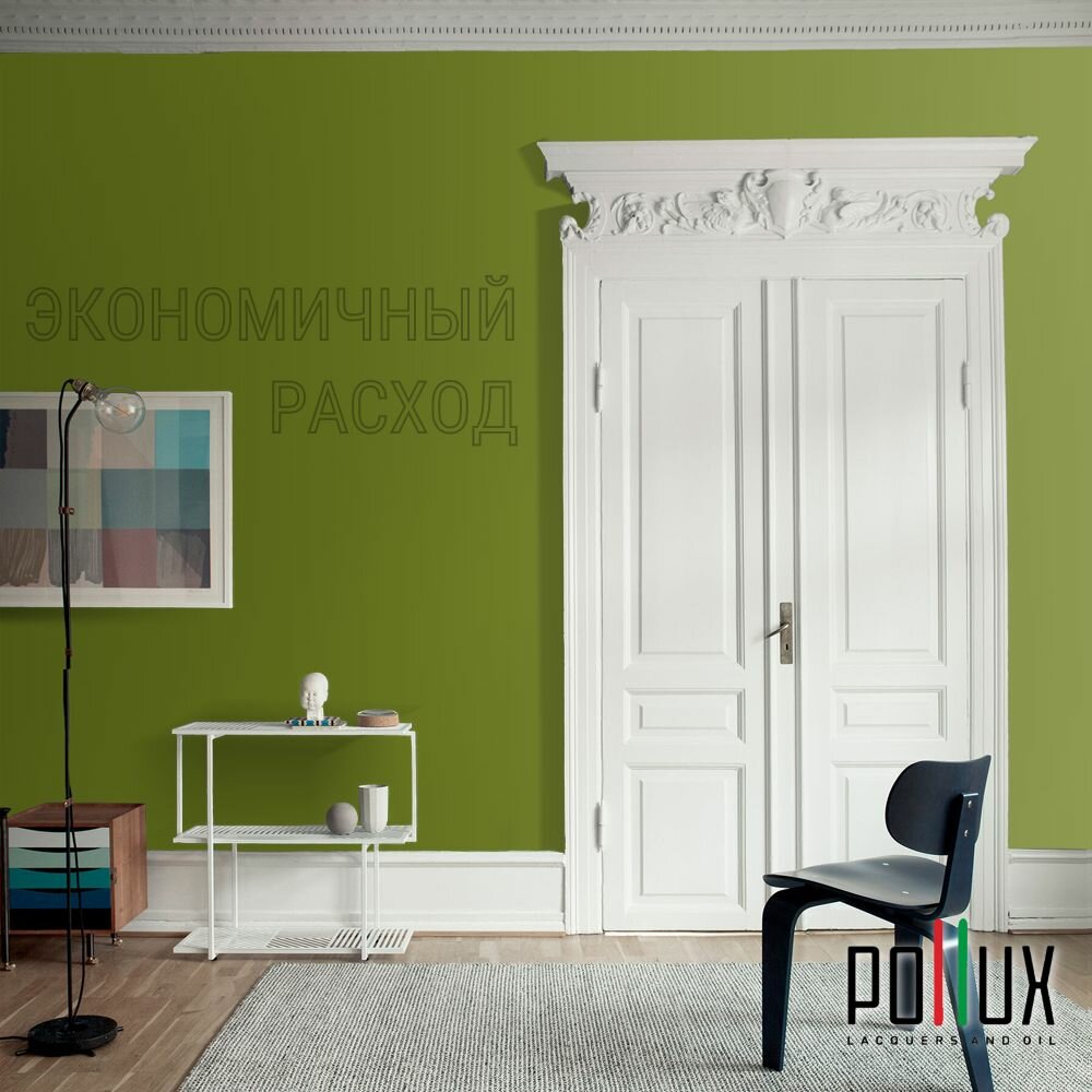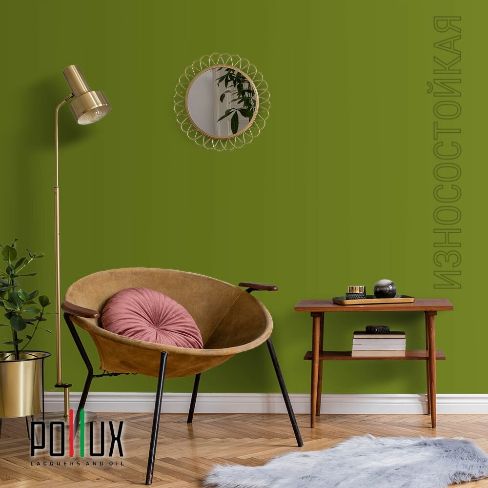 Краска моющаяся интерьерная для стен и потолков, Pollux INTERIOR без запаха, быстросохнущая, акриловая, матовое покрытие, цвет NCS S 8005-G50Y, 1л.