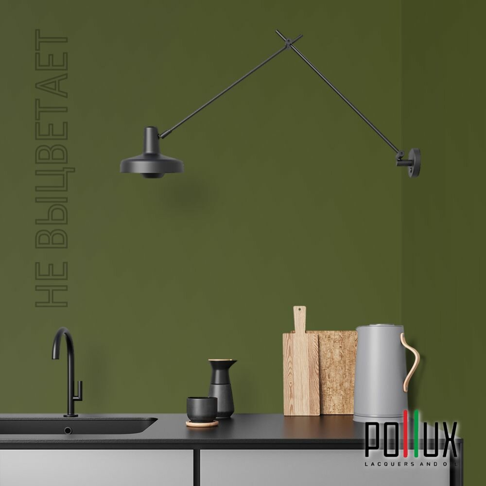 Краска моющаяся интерьерная для стен и потолков, Pollux INTERIOR без запаха, быстросохнущая, акриловая, матовое покрытие, цвет NCS S 8010-G50Y, 1л.