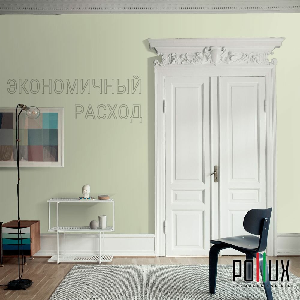 Краска моющаяся интерьерная для стен и потолков, Pollux INTERIOR без запаха, быстросохнущая, акриловая, матовое покрытие, цвет NCS S 6530-G50Y, 1л.