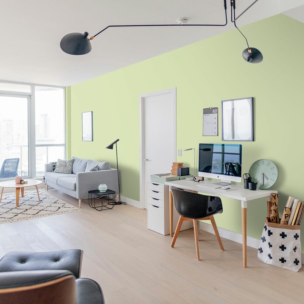 Краска моющаяся интерьерная для стен и потолков, Pollux INTERIOR без запаха, быстросохнущая, акриловая, матовое покрытие, цвет NCS S 0510-G50Y, 1л.