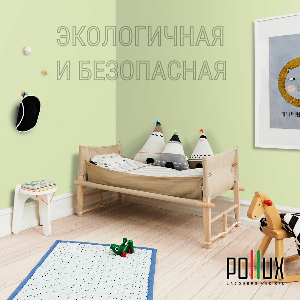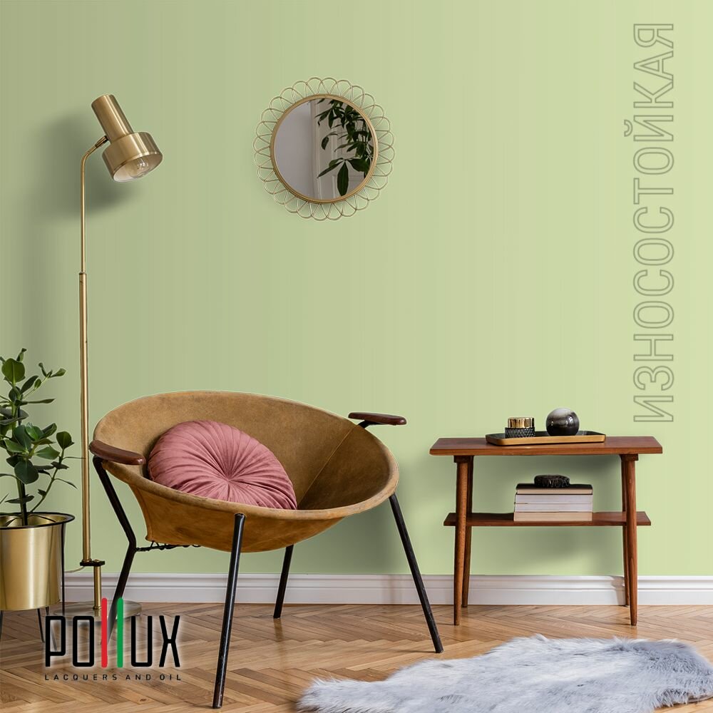 Краска моющаяся интерьерная для стен и потолков, Pollux INTERIOR без запаха, быстросохнущая, акриловая, матовое покрытие, цвет NCS S 5020-G50Y, 1л.