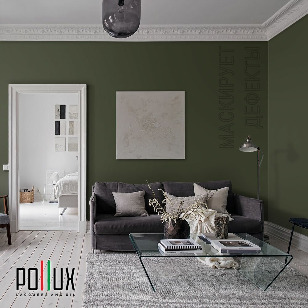 Краска моющаяся интерьерная для стен и потолков, Pollux INTERIOR без запаха, быстросохнущая, акриловая, матовое покрытие, цвет NCS S 4050-G50Y, 1л.