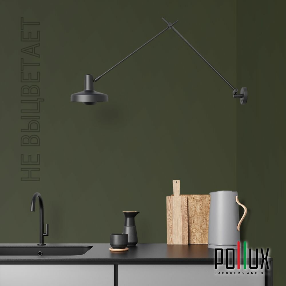 Краска моющаяся интерьерная для стен и потолков, Pollux INTERIOR без запаха, быстросохнущая, акриловая, матовое покрытие, цвет NCS S 6530-G50Y, 1л.