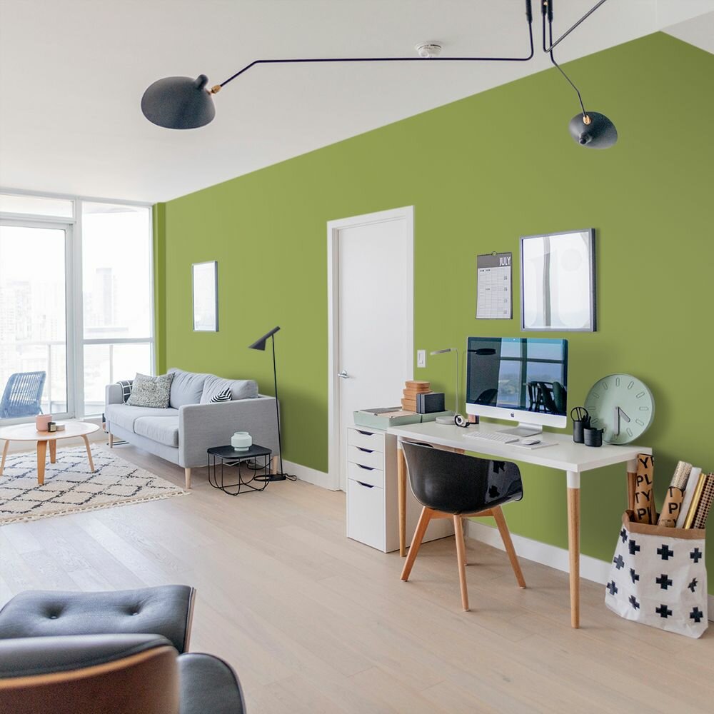 Краска моющаяся интерьерная для стен и потолков, Pollux INTERIOR без запаха, быстросохнущая, акриловая, матовое покрытие, цвет NCS S 6020-G50Y, 1л.