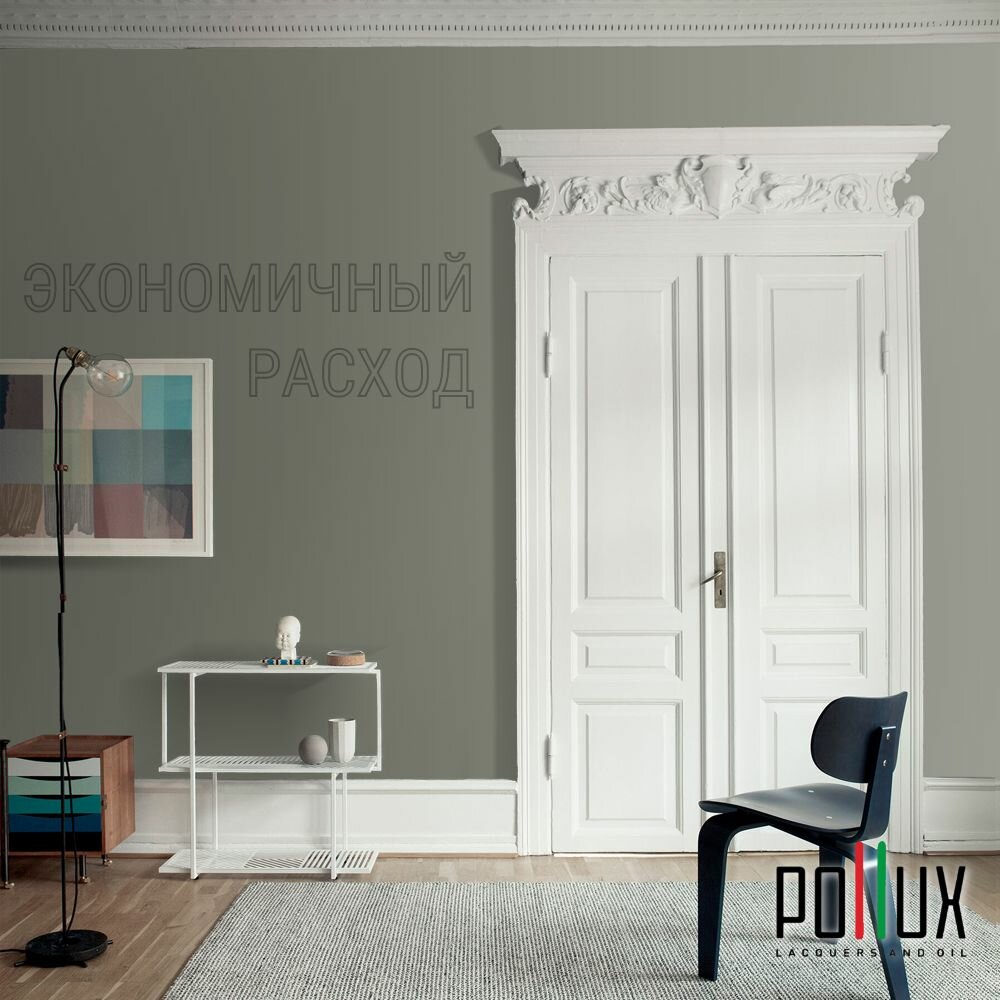 Краска моющаяся интерьерная для стен и потолков, Pollux INTERIOR без запаха, быстросохнущая, акриловая, матовое покрытие, цвет NCS S 7010-G50Y, 1л.