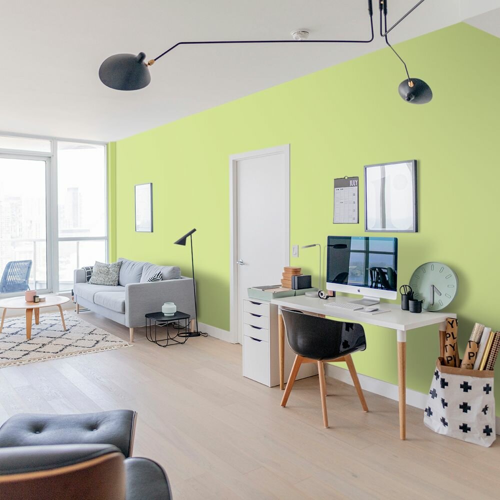 Краска моющаяся интерьерная для стен и потолков, Pollux INTERIOR без запаха, быстросохнущая, акриловая, матовое покрытие, цвет NCS S 6020-G50Y, 1л.